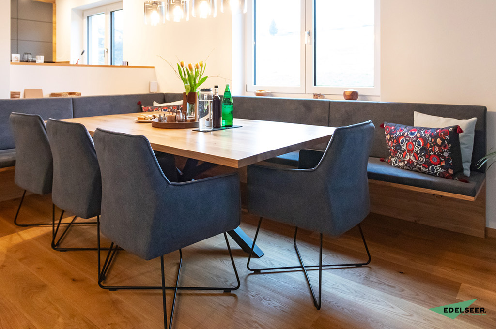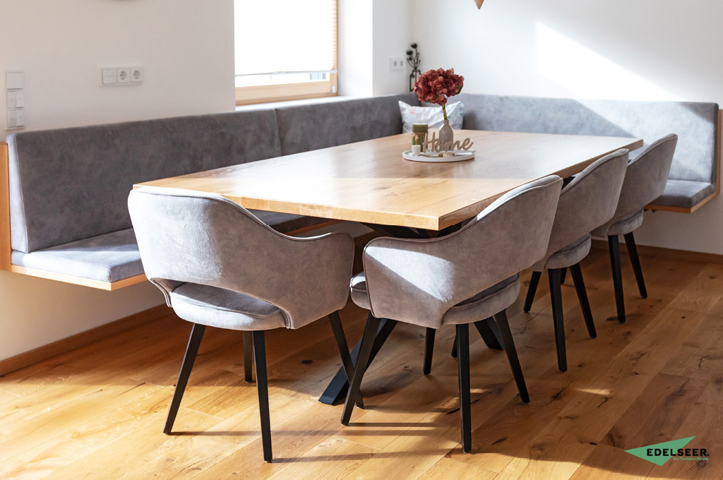 Bei uns sind Sie mit all Ihren Wünschen und individuellen Vorstellungen genau richtig – wir machen aus ihrem Esszimmer oder Essbereich einen Platz zum geselligen Zusammensitzen und Essen!